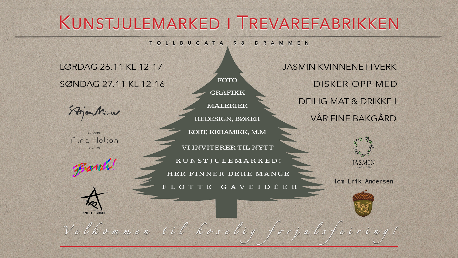 Vi gjentar suksessen fra i fjor og inviterer dere til nytt KUNSTJULEMARKED i den koselige, gamle Trevarefabrikken vår 🤩